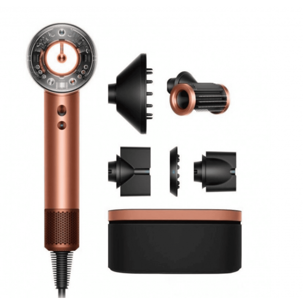 Supersonic – компактный фен, с мощным мотором. Внутри установлен двигатель V9, который вращается со скоростью до 110 тысяч оборотов в минуту. Вместе с технологией Air Multiplier он создает точную высокоскоростную струю воздуха для быстрой и аккуратной укладки.